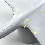 ▲脚カバーは翼下面とピタリとは収まらないので、取り付け接着したあとパテで隙間を修正