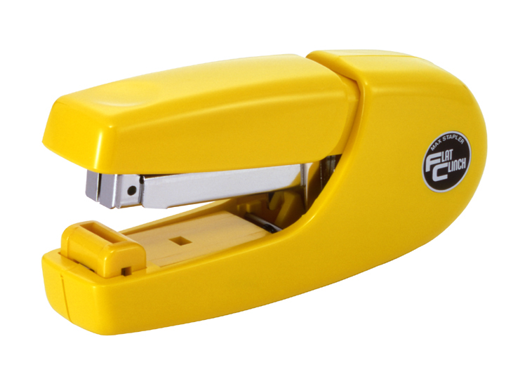 綴じ裏が平らになるマックス独自の「フラットクリンチ機構」を世界で初めて搭載。「従来の綴じ裏が盛り上がる『メガネクリンチ』は、何部も重ねると山になり崩れてしまうため、オフィスでは金槌で潰していたとか…。そんな手間を省きました」(山本さん)