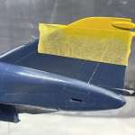機体はインテーク(空気取り入れ口)のリップ部分もシルバーなのですが、写真等を見るとクロームメッキ的な質感なので、ここはフィニッシュシートを貼り込んで再現してみました。きらりと輝くインテークリップがブルーの機体に映えて良いアクセントになります。