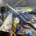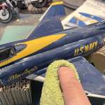 胴体のUS-NAVYとBlueAngelsのロゴが歪みなく主翼上面に映り込むまで根気よく平滑に仕上げていきましょう。ファントムは今回のような光沢仕上げにすると光が映り込んで胴体が実にセクシーな曲線で構成されていることが良くわかります。