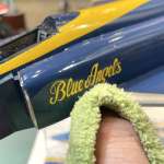 まず機体全体にコンパウンドを塗布。そのあと「キングス・クロス」を使い機体全体を磨き上げていきます。