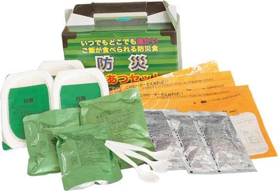 そして「防災あつあつセット」は、白飯とおかずをサバイバルヒーター(食品加熱剤)を使って温められる"あつあつ"の防災食。