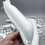 とは言うものの、なにしろシロイルカのフォルムです、巨大なカーゴベイをしょってます。なので1/144スケールでも完成時のモデルサイズは全長382mm×翼幅316mmにもなります。