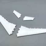 機体には垂直尾翼から胴体かけて、大きなブルーのグラフィックが入っています。キットは2分割された大判デカールで再現するのですが、次回はこの大判デカールを、複雑なラインで構成された尾翼周りにいかにデカールをキレイに貼るかを紹介していきます。
