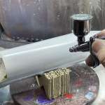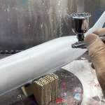 ▲EXホワイトをエアブラシで塗装。隠ぺい力が高いので4回の塗り重ね(通常の白だと5~6回)で、均一な仕上がりを得られる