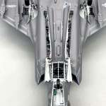 ▲インストの指示のとおりに製作すると、ウエポンベイ内部ディテールもほとんども見えなくなり、翼下にはAIM-9サイドワインダー以外のウエポンも搭載できない。それではつまらないので作例はスケールモデルとしての見栄え優先で『全部開けました、全部積みましたスペシャルモード』で製作。主翼パイロンにはGBU-12ペイブウェイⅡを4発、ウエポンベイにはAIM-120Cアムラームに加えGBU-32JDAMを2発搭載したフル搭載状態としてみた