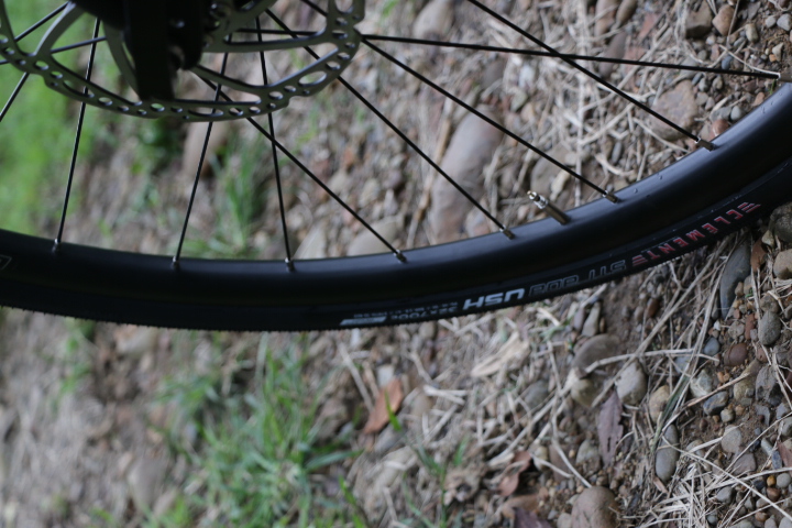グラベルロードの大きな特徴のひとつが、通常のロードバイクより太めの32~40Cくらいのタイヤを履いていること。
