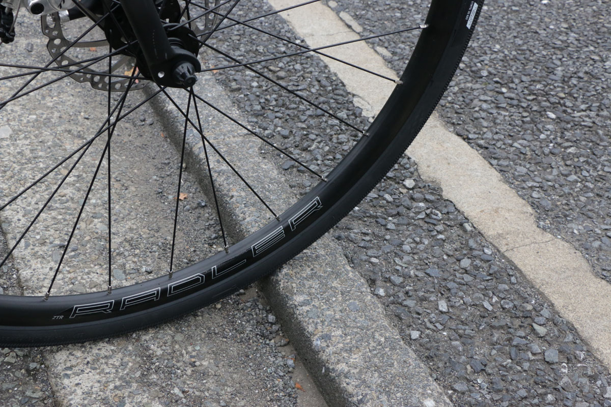 「太いタイヤだと走りが重いんじゃ……?」と思う人もいるかもしれませんが、そんなことはありません。確かにレース直系のモデルと比べたら重いかもしれませんが、一般の人がロードバイクに求める走りの軽さや速さは十分に持っています。