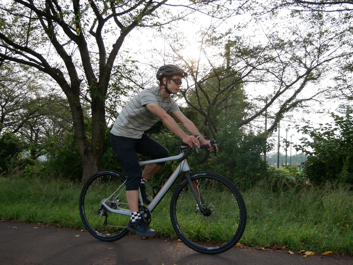 また、ポジションも通常のロードバイクに比べるとハンドルが高く、ハンドル幅も広く設計されています。砂利道などでのコントロール性を高めるためですが、初心者にとっても、そのほうが乗りやすいですよね。