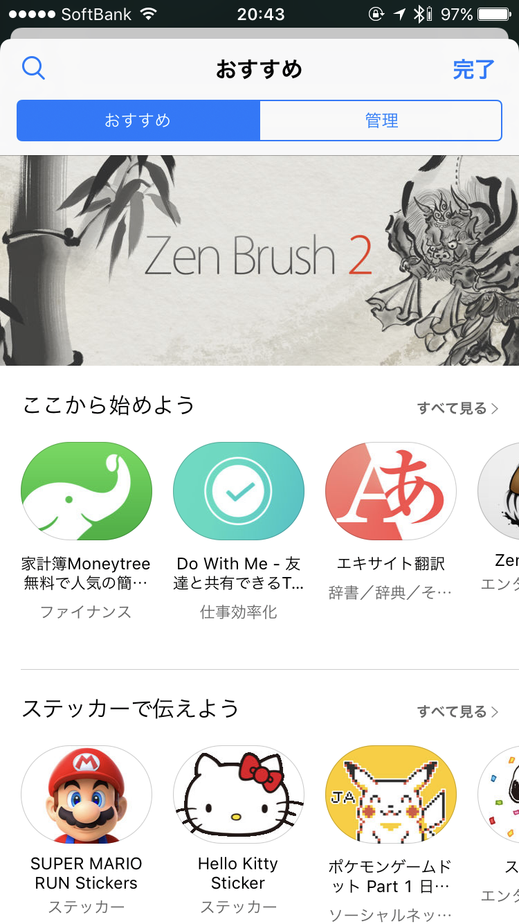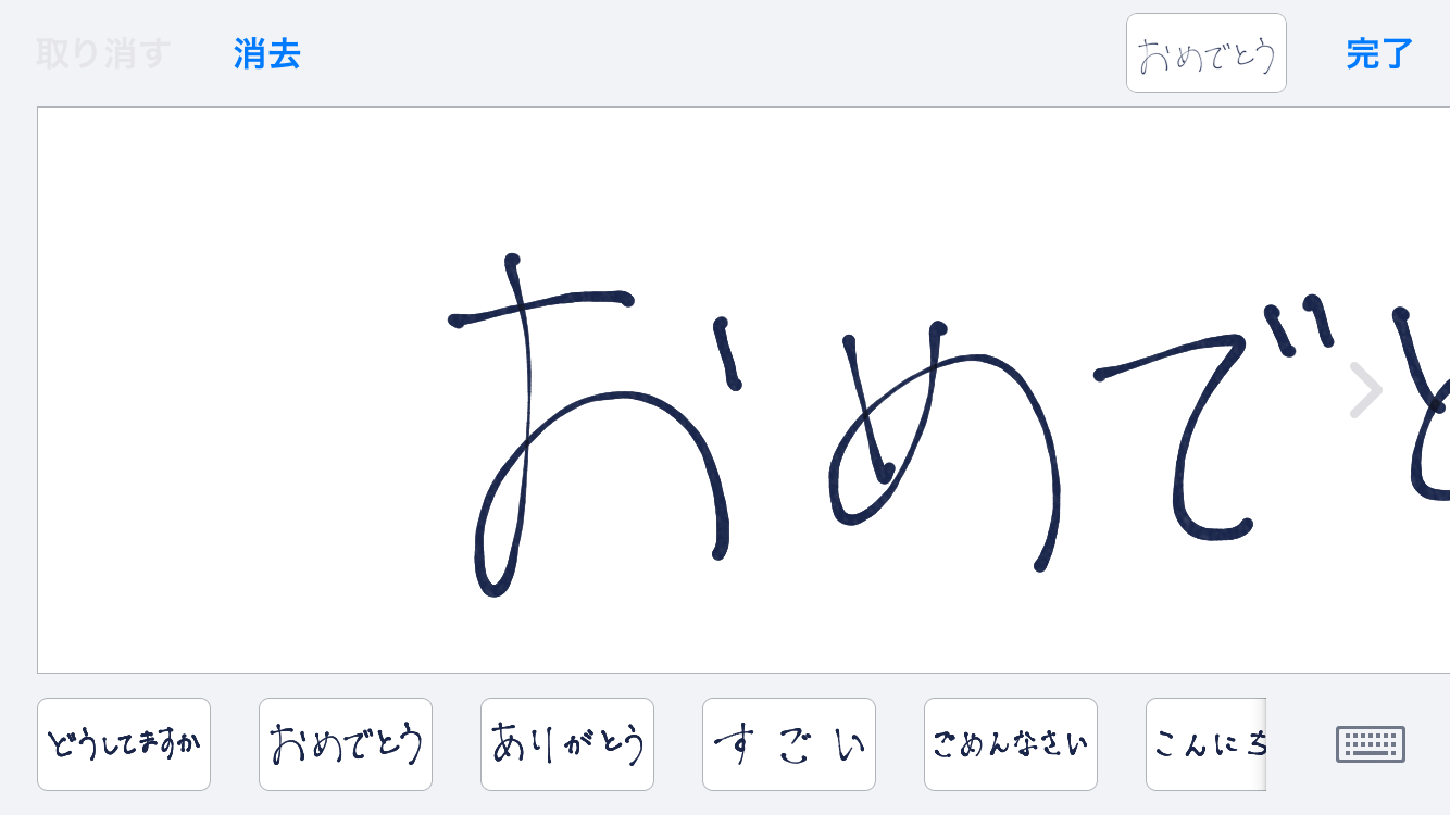 あとは文字を書くか、あらかじめ用意されたメッセージを選択して、「完了」をタップ。