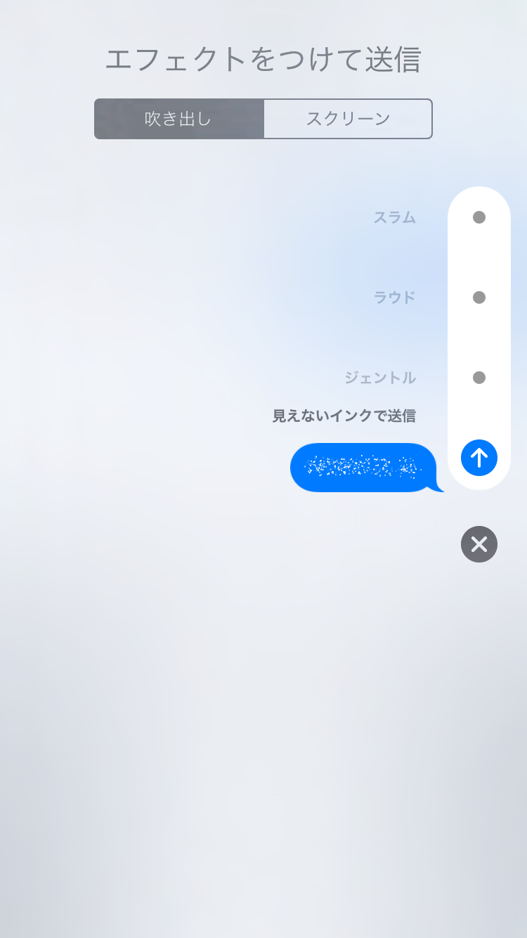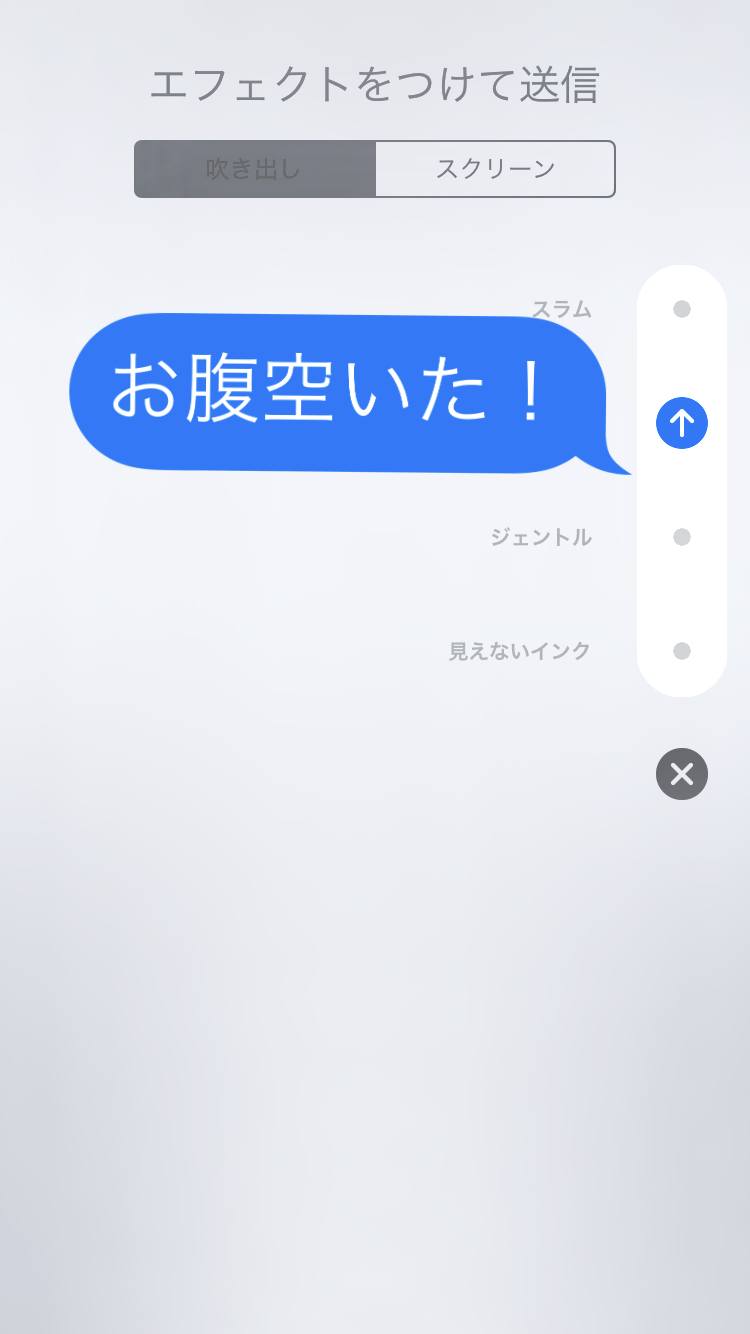 すると、エフェクトの選択画面が表示されます。エフェクトは「スラム」「ラウドで送信」「ジェントル」「見えないインク」の4種類。「ラウドで送信」を選べば、まるで叫んでいるような吹き出しが表示されます。これでより感情を伝えられそうです。