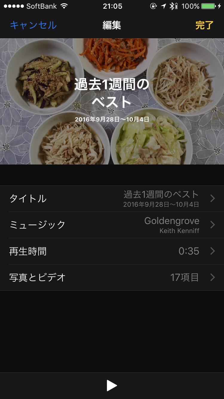 メモリーに追加されたアルバムは、BGM付きのムービーも作成されます。自分でこういったムービーを作成できるアプリもありますが、わざわざ作るのが面倒な人も、全自動で作られるなら面白いと感じるはず。