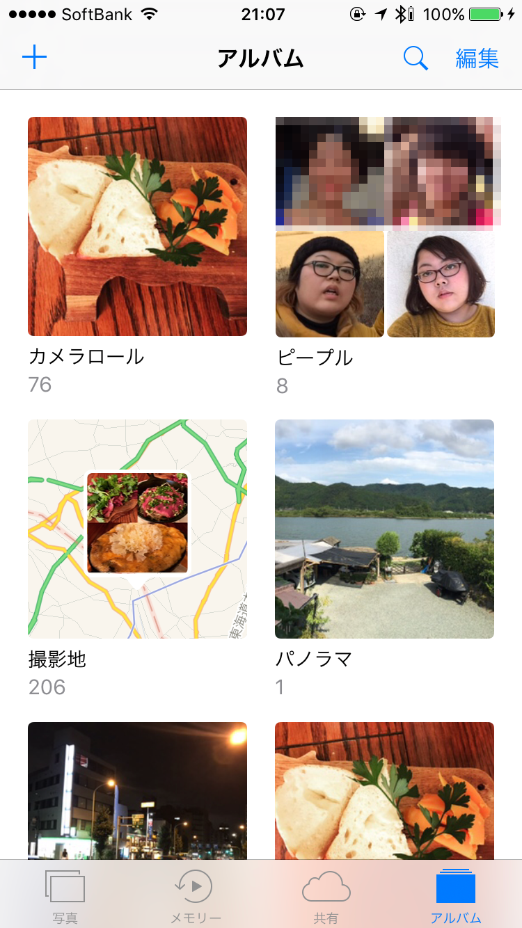 このタブでは、端末内の写真で自動的にアルバムが作成されます。