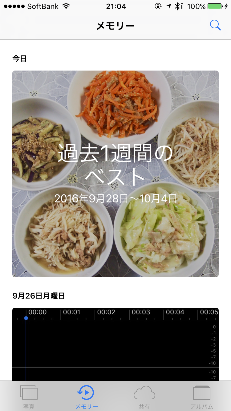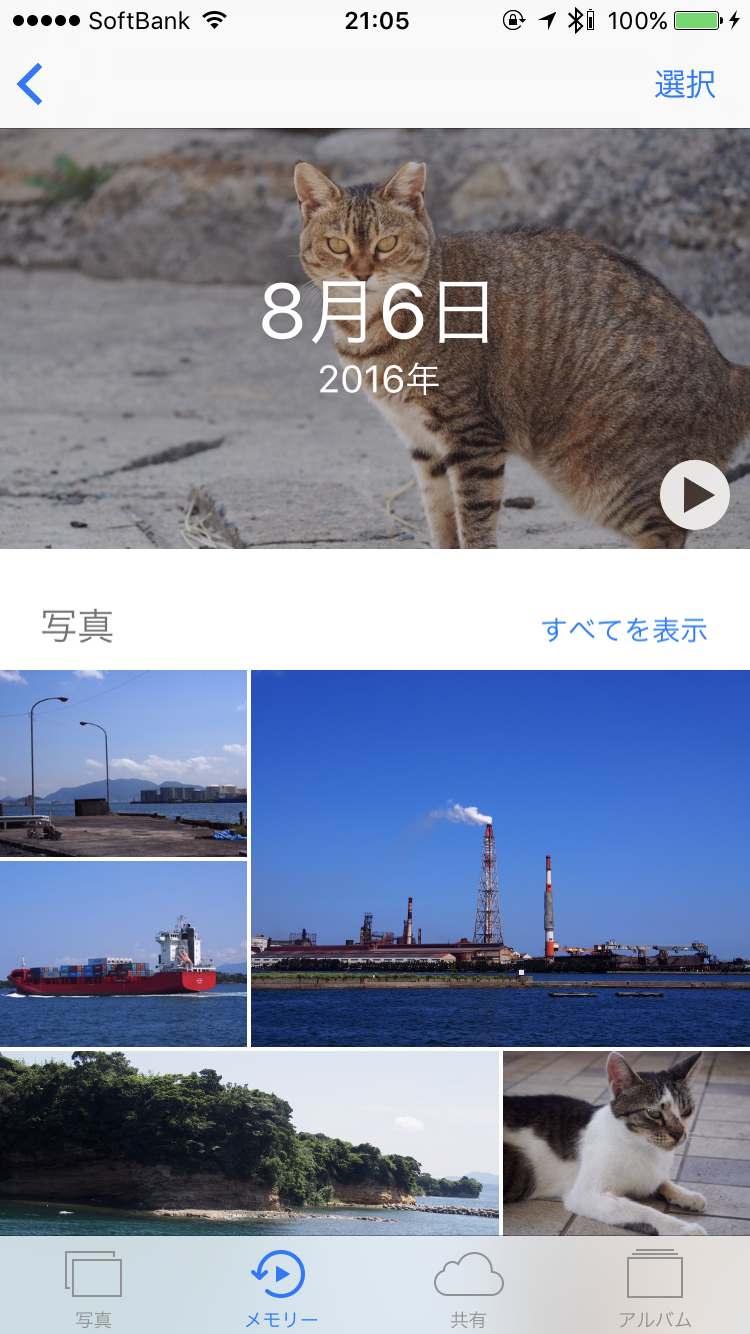 「写真」アプリを起動すると、「メモリー」という新しいタブが加わったことに気付くでしょう。