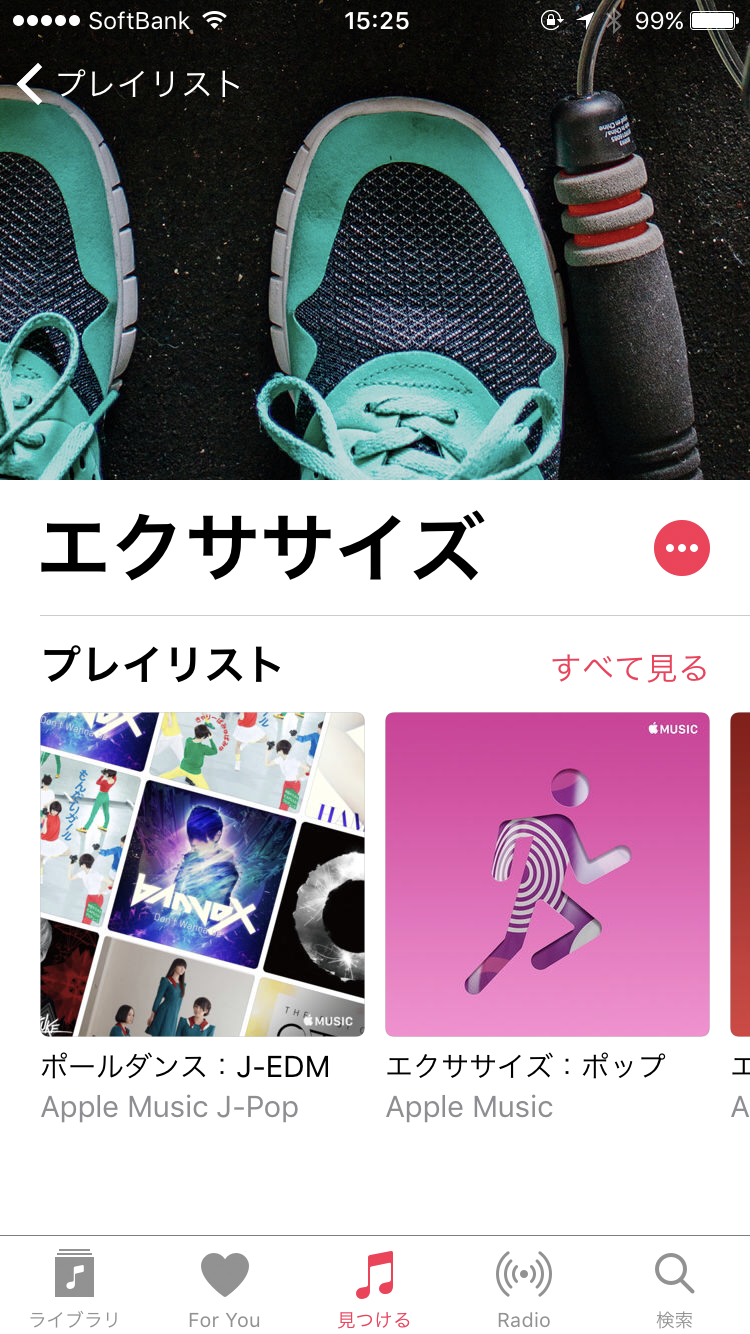 ランキングをこまめにチェックしていれば、音楽の流行に乗り遅れずに済みそうです。また、「見つける」の機能のひとつである「プレイリスト」では、「ウィークエンド」「エクササイズ」など、シチュエーションに合わせた多彩なプレイリストがチェックできます。