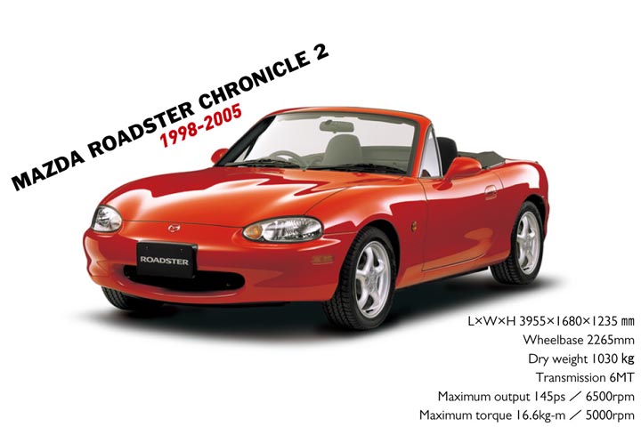 ユーノス店廃止にともない、ロードスターは「ユーノス・ロードスター」から「マツダ・ロードスター」へと名称変更されている。対人衝突安全性の観点から初代で好評だったリトラクタブルヘッドライトは廃止されたものの、人馬一体のコンセプトはしっかり継承。どのモデルも軽量コンパクトで運転する楽しさを再認識させた。より幅広い層に受け入れられるようクーペ、ターボモデルの投入や積極的に限定車を投入している。