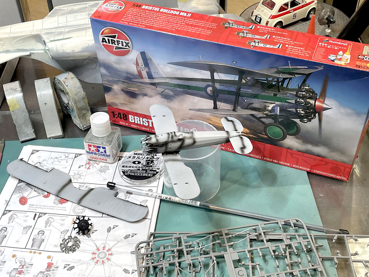 ブリストル・ブルドッグの製作、第2回となる今回は、機体を組んでいきます。一般的な飛行機モデル(単葉機)では、胴体と主翼を合体、できる限り「士」の字に仕上げて機体の塗装となるのですが、複葉機の場合、そうはいきません。