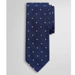 ネイビーベースに白いドット柄というクラシックなネクタイは1本持っておくと何かと重宝。アメトラ殿堂ブランドのそれは、はっきりとした畝が特徴のレップ織りのシルクを使ったもの。クリーンな印象ながら、ドットが普段のスーツスタイルに遊び心をもたらせてくれるはず。