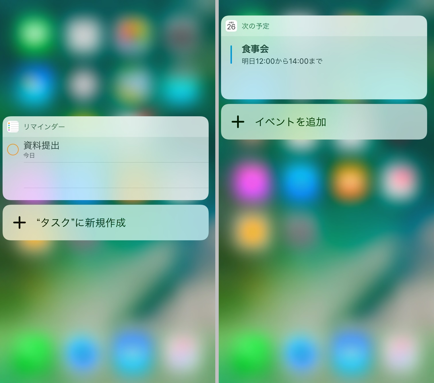 「カレンダー」や「リマインダー」アプリの場合、3D Touchによって直近の予定を確認できます。