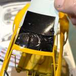 作業的にはこのあと、クリアーでオーバーコート塗装となるのですが、ルーフとボンネットに貼ったカーボンスライドマークは大判ということもあり、水分が完全に抜けるまでに最低でも2日程度は必要です。水分を残したままのクリアーコートはトラブルの原因になるので、ここは焦らずしっかりと乾燥させる必要があります。模型用の乾燥ブース使えば乾燥時間の短縮が可能です。