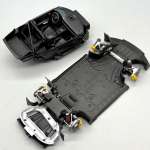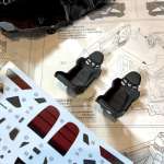 コクピットフロアのディテールは、ボディに収めてしまうと半ば見えなくなってしまうのが辛いところですが、キットはクリアパーツの透明度が高く歪みもないので、完成後に内部が良く見えるし、インテリアはカーモデルの見せ場のひとつでもあるので、しっかと仕上げたいところです。