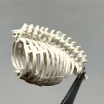 ゴジラのアイデンティティでもある背びれは、1組あたり3枚のパーツをクリア成形のジョイントで組み合わせて、背骨に組み付ける構成になっています。つまりゴジラの背びれは背骨から生えているものではないということ。これはなかなか興味深いです。