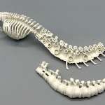 ゴジラといえば長い尻尾が特徴ですが、キットは少ないパーツ(6パーツ)で筋肉がうねる尻尾の骨格が再現されています。キットの尻尾は浮いた状態を再現していますが、尻尾を接地させる案もあったとのこと。しかし動きのある咆哮ポーズを再現したディスプレイモデルだからこそ、尻尾を挙げたポーズにこだわっているそうです。