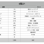 ▲d払いは、スーパーマーケットやグルメなどのカテゴリで数が多く、ネットではファッション・スポーツでの数が抜きん出ている