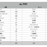 ▲au PAYは、店舗の対応数が1000弱でかなり多い。特にスーパー・飲食料品やグルメの数値が大きいようだ