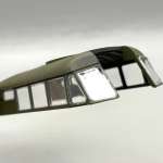 キビシ~!と叫びつつ、なんとか艇体を組み上げたら、キャビンのトップ(カバー)の製作を進めます(製作工程21)。内側をグレー、外側をオリーブグリーンで塗装したのち、ウインドパーツを接着していきます。パーツは13枚もあるのでなかなか手間が掛かります。