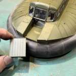 ブリッジを展開した方がキャビン内部が見えるのですが、今回の作例はジオラマで水上走行中を製作するので、格納状態で製作しています。