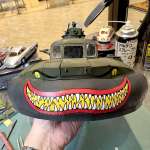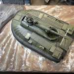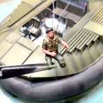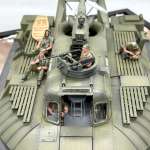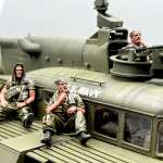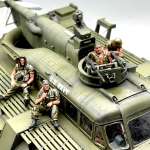 ▲塗装が完了したフィギュアをPACVの艇体上の仮置きした状態。さらにここに兵士の銃や弾薬箱といったアクセサリーパーツが追加される。銃座の機銃の銃身が片方ないのは不注意で折ってしまったため