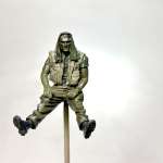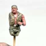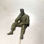 操舵手に関してはキャビン内に乗せなくてはいけないので先行で塗装をしています。塗装は、「PBRボート」からトレードしたものとレジン製の兵士2体ともども黒サーフェイサーで下地を塗装。その後、ベースカラーとなるオリーブグリーンをエアブラシで塗装し、ジャケットや装備は水性アクリル塗料を使い筆塗りで仕上げました。