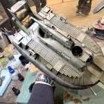 ▲胴体両側のデッキは木製と思われるので「グレイッシュブラウン」をメインにキャビンやエンジン周りは「ステイブラウン」と「グラウンドブラウン」を重ねることで汚れの質感を変えている。個人的な好みから、ウェザリングは控えめしている