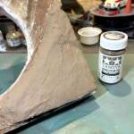 ▲Mr.ウェザリングカラー「グレイッシュブラウン」を筆塗りで艇体に塗装し、埃の汚れた質感を入れていく。ウェザリングカラーは専用の薄め液で希釈した状態で使用する