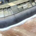 実物の写真を参考にしつつ、Mr.ウェザリングカラーの「グレイッシュブラウン」と「ステインブラウン」を使い艇体の汚れを描いています。