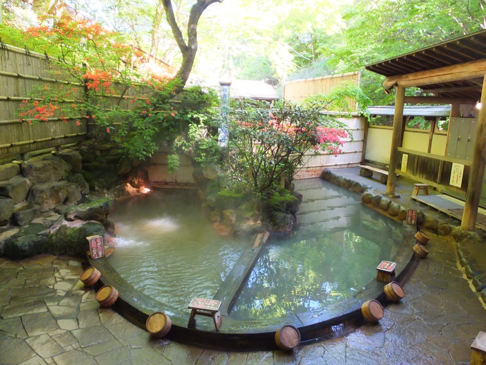 せせらぎの音に山里の秋を感じながら、ゆったりと温泉につかることができます。