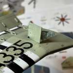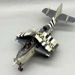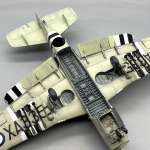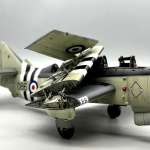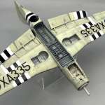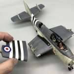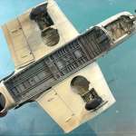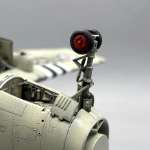 ▲中央の翼の取り付けが完了。まだロケット弾を取り付けていないので仮組み状態。このままなら艦載機でよくみられる折りたたみ翼だが、ガネットは外翼がさらに外側にたたまれてZ型になる