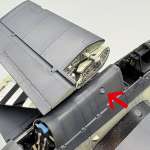 組み上げた翼は3分割されているので、それぞれをヒンジパーツで繋げていきます。当初、強度に不安を感じていましたが、組んでみると意外にしっかりと剛性が出るので、伸ばした主翼との差し替えでも破損の不安がありません。角度も問題なく決まります。当然ながら中央の翼下面のロケット弾は先に接着しておく必要があります。