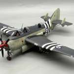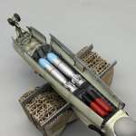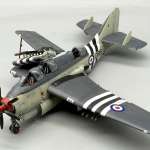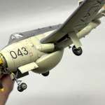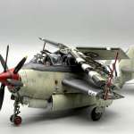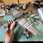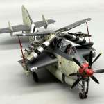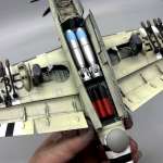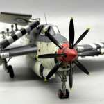 ▲ロケット弾や爆弾倉内部のソノブイなども接着し、折りたたみ状態の主翼を取り付けてみたら、重心位置が変わったことでテールヘビーとなり尻もちを着いてしまった