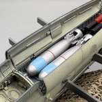 そこで、胴体の爆弾倉内に取り付ける魚雷(2本)の先端、さらにスピンナー内部、そしてダメ押しで爆弾倉のトビラ裏側にも板鉛を張り付けました(約12g追加)。これでようやく尻もち問題が解決しました。機体を持つとズシッと重さを感じます。