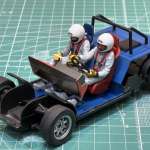 最新のカーモデルキット比べると一体成型されたボディの塗り分けなど、手間がかかる部分もあります。しかしパーツも少なくサクサクと製作を進められるので、カーモデルビギナーにもお勧めですし、大判のデカール貼りやフィギュアの塗装も楽しめます。また発売中(限定再販)のラリーサンクの市販車仕様もなかなか魅力的で、今回のラリー仕様と一緒に飾りたくなりますね。