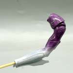 ▲腕はエヴァパープル→マスキング→エヴァグリーン用下地ホワイト→エヴァグリーン→マスキング→セミグロスブラックの順番で塗装を仕上げている。マスキングの手間は掛かるが塗分けが目立つ部分なので丁寧に仕上げたい
