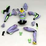 先にも書いたようにパーツは塗装を考慮した分割がなされているので、パーツ単位で塗装していけばOKです。ただし両腕はパープルとグリーン、ブラックをマスキングで塗り分けていかないといけません。特に「エヴァグリーン」は下地色として白を塗装しないと鮮やかな色が出てくれません。マスキングの手間はかかりますが丁寧に塗装を進めます