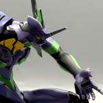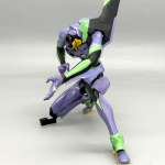 ▲陽電子砲を構える迫力あるポーズの完成した初号機本体が完成。マーキングデカールはまだ貼っていない