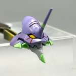 初号機の頭部は8パーツで構成されています。かなり小さいので、パーツ単位でパープルとシルバーグレーで塗装。エヴァグリーンの部分と目のイエローは筆塗りで仕上げています。