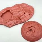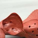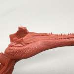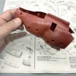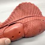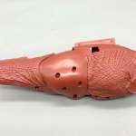 ▲スライド金型で成形したことで内部を空洞化、肉厚のパーツで避けられないヒケ(パーツ表面の凹み)を防いだ背びれパーツ。胴体と隙間なくピタリと組み合わせられる