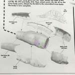 ▲キットの組み立て説明図。芯となる胴体に7点の外皮パーツをを貼り付けていくことが分かる。説明はすべて英文だがエクスプラスは日本の模型メーカー。これは古き良き時代の海外メーカーへのオマージュだ