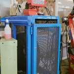 組替専用の空気入れ。膨らむ際にホイールの淵に強い勢いでぶつかり、大きな音が響く。