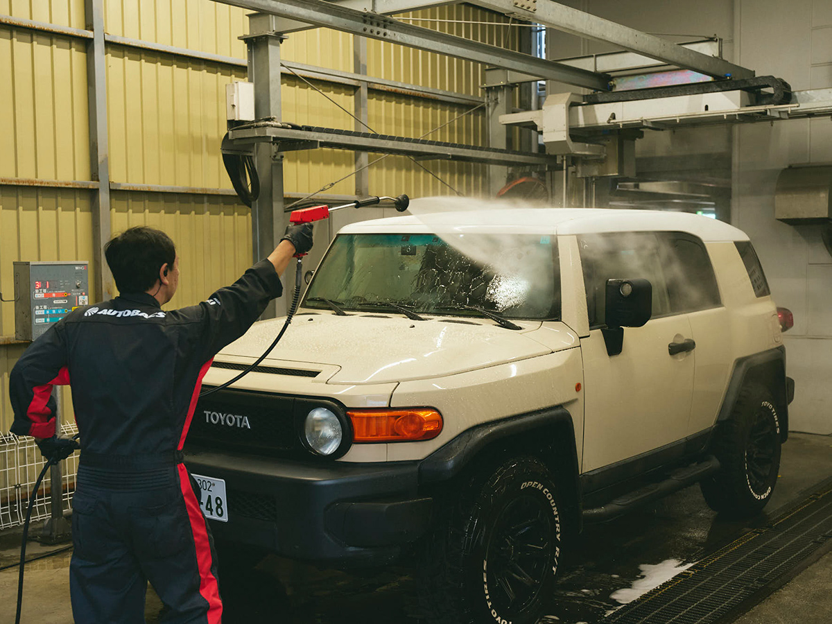 しっかりとボディ全体を洗い終えたら、もう一度洗車機を用いて洗剤を洗い流します。洗剤の泡が残ると跡が残ってしまうため十分に洗い流すことがポイント。